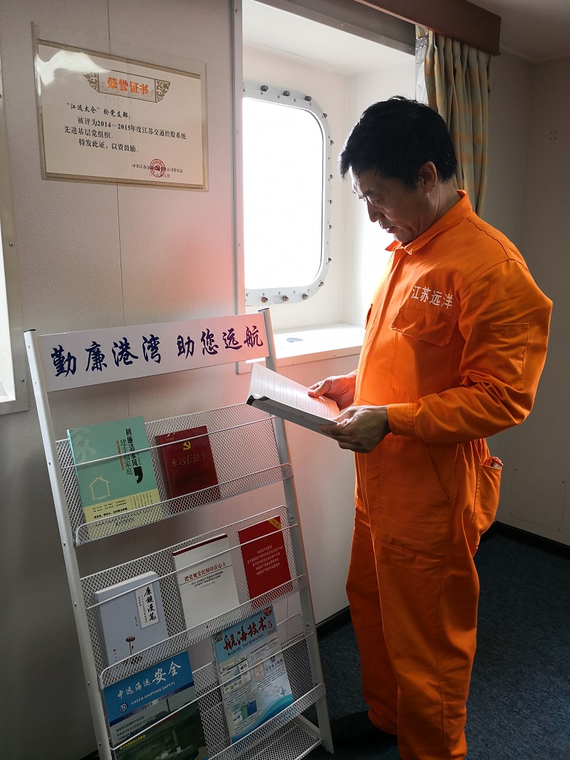 三是開展船舶廉潔文化建設。在船舶開展亮出黨員身份活動,在生活區(qū)設置廉潔書架,提供廉潔教育書籍、光盤,布置張貼廉潔海報。