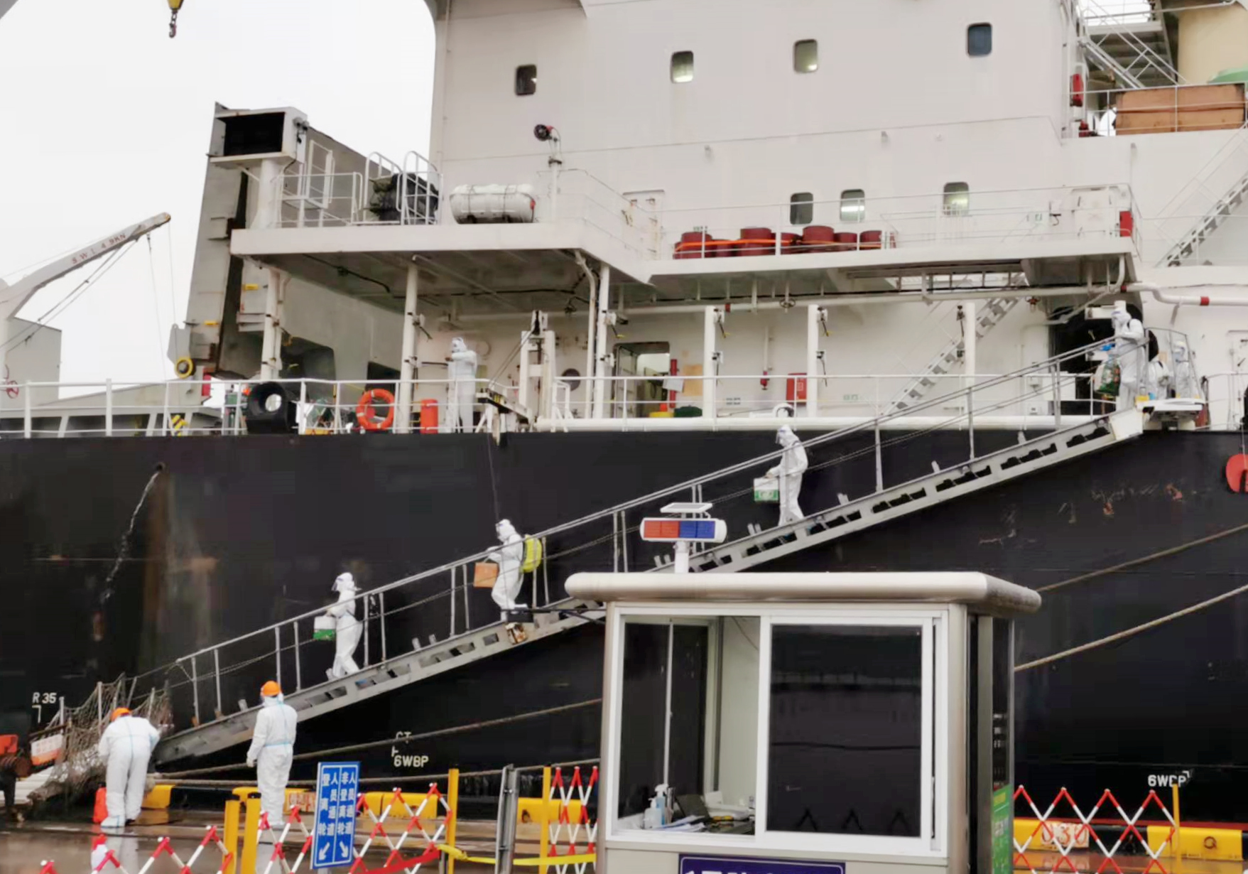 春節(jié)即將來(lái)臨、又值雨雪天氣,江蘇遠(yuǎn)洋十分牽掛堅(jiān)守崗位、在船工作的船員。近日,在太倉(cāng)港管委會(huì)和蘇州港集團(tuán)的關(guān)心和支持下,“江遠(yuǎn)太倉(cāng)”輪順利靠泊太倉(cāng)港鑫海碼頭。公司總經(jīng)理、黨委副書(shū)記戴偉與船員公司副總經(jīng)理荀俊兒冒雨抵達(dá)太倉(cāng)港鑫海碼頭,對(duì)在船船員進(jìn)行節(jié)前慰問(wèn)。