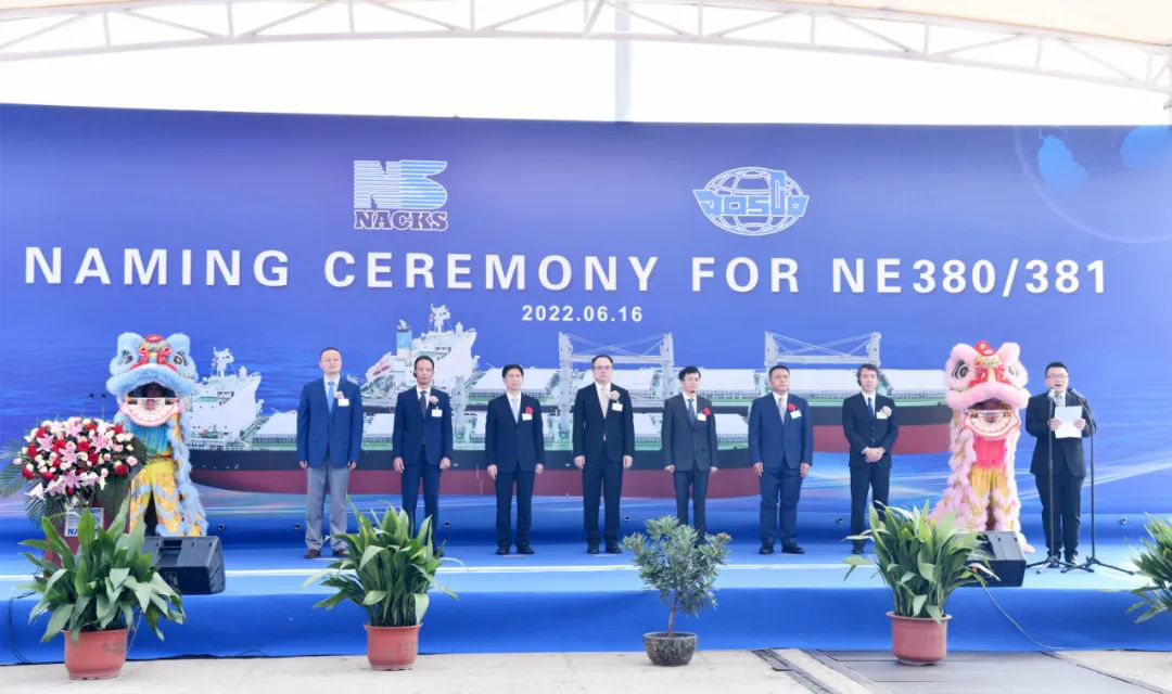 本次命名的兩艘新造船船長199.90米、型寬32.24米、型深19.40米,滿載設計航速13.8節(jié),是江蘇遠洋推進智慧航運的智能化、節(jié)能化、綠色環(huán)保新型船。江蘇遠洋將發(fā)揮新船設備先進、節(jié)能環(huán)保、具有較強市場競爭力的優(yōu)勢,加強管理創(chuàng)新經(jīng)營,嚴控風險提質增效。今年江蘇遠洋在南通和大連中遠海運川崎船廠共建造4艘新一代6.4萬噸散貨船,交付運營后將大大助力省港口集團“做優(yōu)做強做大航運板塊”,為江蘇遠洋更好服務地方經(jīng)濟發(fā)展,為外貿(mào)大省構建新發(fā)展格局再添生力軍。