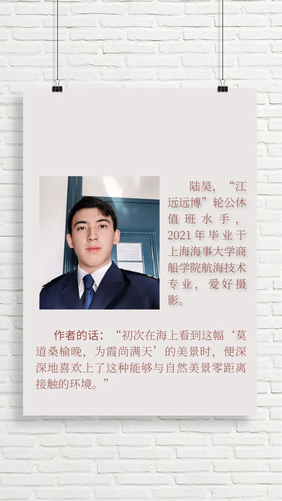 每每用相機(jī)記錄下沿途的所見景色,便讓在船上的生活多了幾分對(duì)明日的向往!