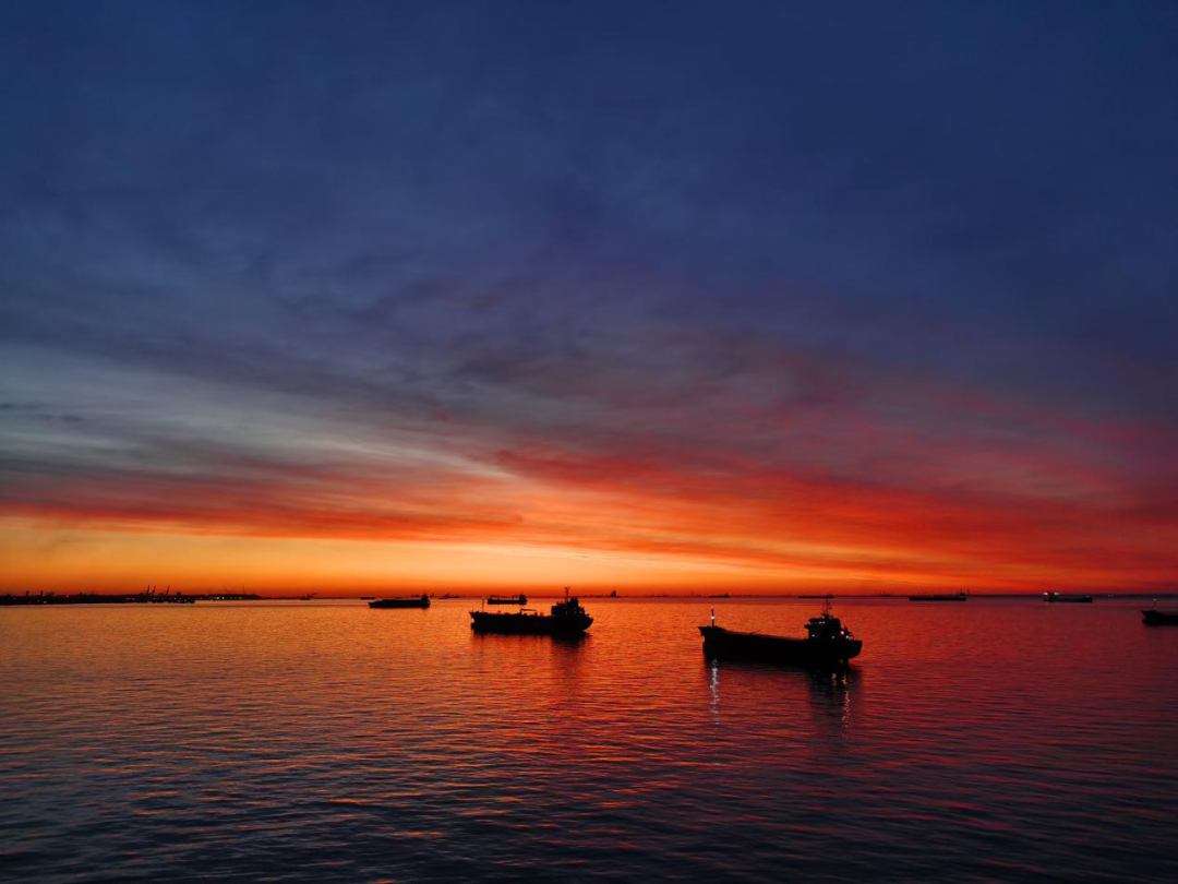 過往船舶仿佛融入了這幅美妙畫卷之中。