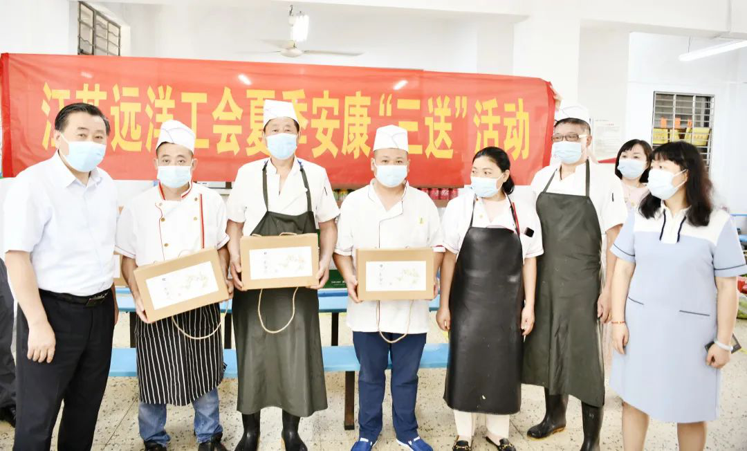 驕陽似火、酷熱難當(dāng)。持續(xù)的極端高溫天氣,“烤”驗(yàn)著奮戰(zhàn)在一線的職工,也牽動(dòng)著公司領(lǐng)導(dǎo)們的心。為切實(shí)改善高溫一線作業(yè)職工的生產(chǎn)和生活環(huán)境,有效預(yù)防和控制高溫中暑和高溫作業(yè)引發(fā)的各類事故,保障廣大職工的生命安全和身體健康,7-8月,江蘇遠(yuǎn)洋主要領(lǐng)導(dǎo)帶隊(duì),工會(huì)主席和相關(guān)部室負(fù)責(zé)人專門組成夏季安康“三送”(送清涼、送安全、送法律)慰問組,明確責(zé)任、落實(shí)任務(wù),嚴(yán)格按照集團(tuán)工會(huì)要求,把公司的關(guān)懷送達(dá)一線班組,為奮戰(zhàn)在高溫環(huán)境下的船岸職工送上清涼,獻(xiàn)上關(guān)懷。