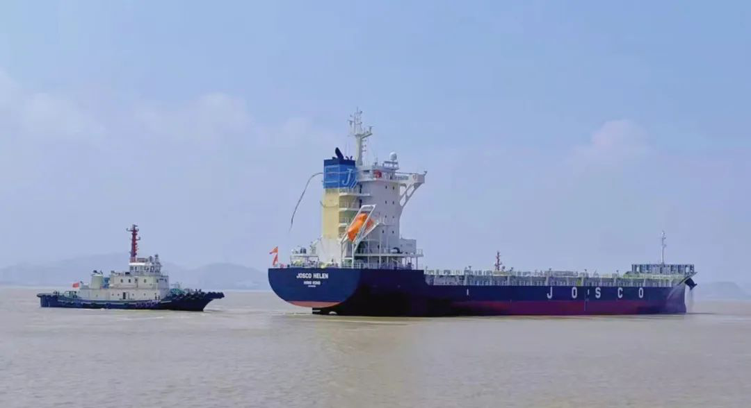 中午,隨著最后一根纜繩離開常石船廠的纜樁,螺旋槳轉(zhuǎn)動起來,向后推開水花,“江遠(yuǎn)遠(yuǎn)慧”輪開啟了她的首航。