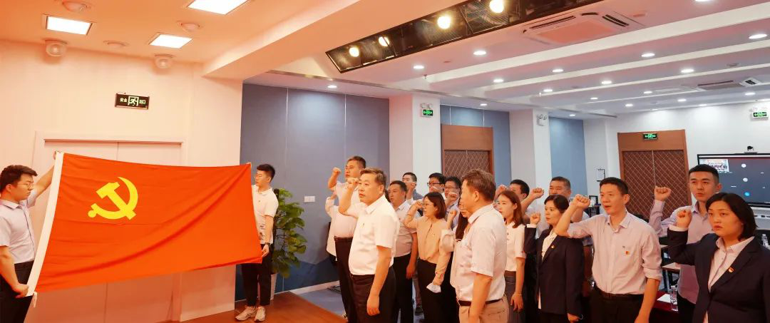 在晁陽帶領(lǐng)下,新發(fā)展黨員面向黨旗、高舉右手,莊嚴宣誓:“我志愿加入中國共產(chǎn)黨,擁護黨的綱領(lǐng)......為共產(chǎn)主義奮斗終身,隨時準備為黨和人民犧牲一切,永不叛黨。”聲音整齊劃一,鏗鏘有力,傳達出黨員們堅定不移的入黨信念和踐行誓言的決心。