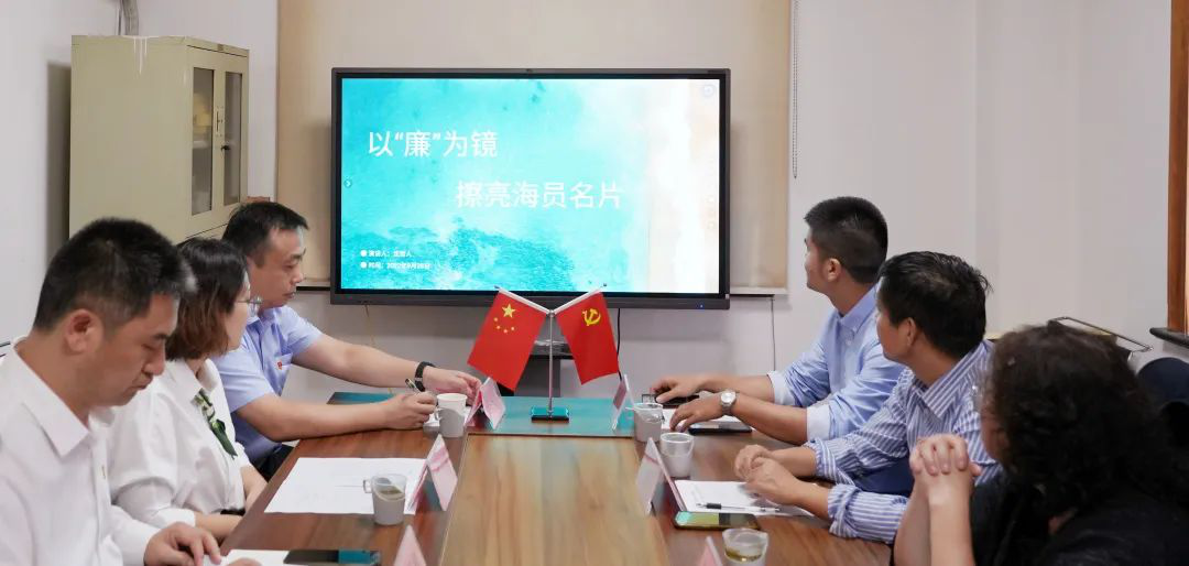 隨后大家現(xiàn)場集中觀看江蘇遠洋《風清舵正 揚帆絲路》廉潔文化宣傳片,領取廉情卡,簽訂《廉潔承諾書》。參加活動的4名海嫂分享了她們在家風傳承、廉潔自律方面的感人故事。在交流中,她們真誠表達了船員家屬的不易,講述了她們與丈夫在廉潔自律方面的具體行動,并表示今后要當好“廉內助”。大管輪沈哲人作題為《以“廉”為鏡 擦亮海員名片》的交流發(fā)言,強調要將清正廉潔作為人生信條,堅決守住廉潔底線,不觸碰道德紅線,將個人發(fā)展融入公司改革發(fā)展大局,充分展現(xiàn)青年船員的擔當作為。