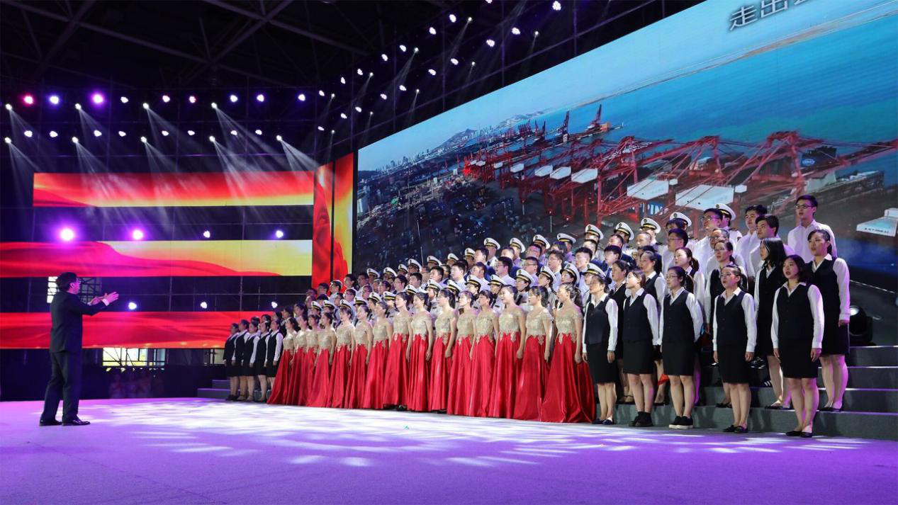 公司代表江蘇省港口集團派出了30幾位青年員工,參演了《國資力量》大合唱節(jié)目。他們統(tǒng)一穿著代表遠洋船員的白色海員服,頭戴海員帽,個個精神抖擻、志氣昂揚,展現(xiàn)了江蘇遠洋新一代青年員工奮發(fā)向上的精神風貌。
