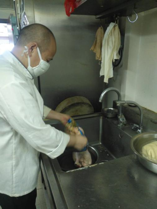 廚房作業(yè)期間,佩戴口罩;增加菜類清洗次數(shù)