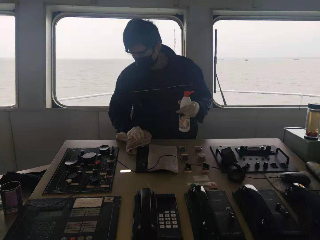 兩艘船舶接到指令后,表示堅決服從命令聽指揮,堅守崗位加油干,認(rèn)真學(xué)習(xí)貫徹執(zhí)行江蘇遠(yuǎn)洋和公司關(guān)于疫情防控相關(guān)文件精神和工作要求。鑒于船舶在長江沿線靠泊口岸碼頭較為頻繁,船上空間小、船員集中居住生活、醫(yī)療保障條件有限等特殊情況,在控制疫情期間,船員們主動放棄休假和節(jié)日團(tuán)聚,堅持不換班、無故不離船,減少船岸人員交流,禁止無關(guān)人員上船,同時做好日常防控工作,堅持航次會和班前會制度,及時傳達(dá) 疫情防控文件精神及安全要求;注重食品安全、供應(yīng)及保障工作;廚房、餐廳、工作場所及居所的清潔消毒工作;關(guān)注個人衛(wèi)生,要求勤洗手、勤洗澡、戴口罩;堅持每日兩次測量體溫并記錄,密切關(guān)注個人身體狀況,有情況及時通報,執(zhí)行零報告制度。