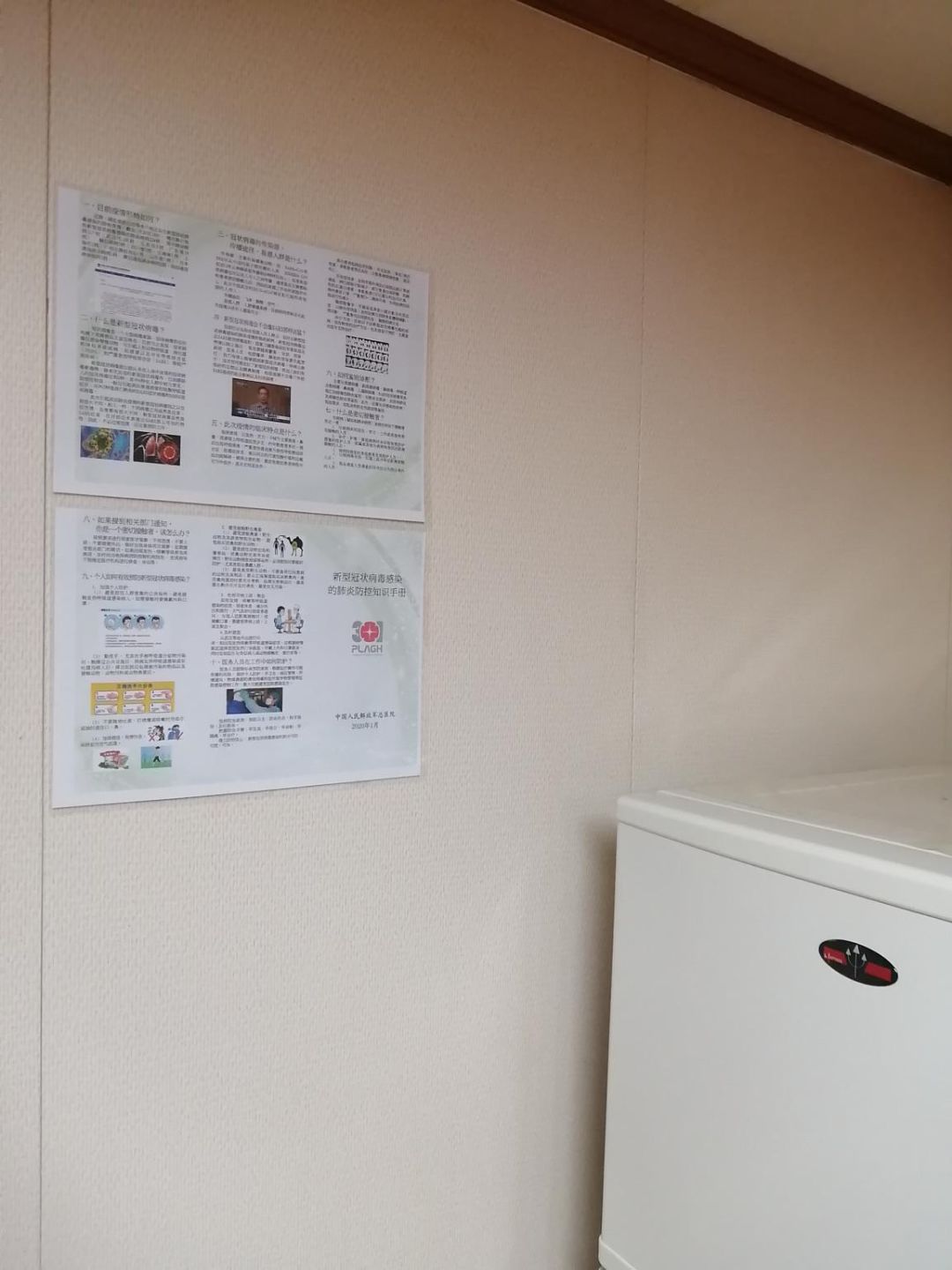 船長(zhǎng)及時(shí)召開了全體船員大會(huì)并利用船舶黨小組學(xué)習(xí)時(shí)間,對(duì)疫情防控工作做了初步的布置,要求大家按照《新型冠狀病毒感染的肺炎防控知識(shí)手冊(cè)》的要求采取各項(xiàng)防控措施,做好體溫測(cè)試及個(gè)人衛(wèi)生,同時(shí)對(duì)全船所有公共場(chǎng)所和個(gè)人房間進(jìn)行了統(tǒng)一消毒。