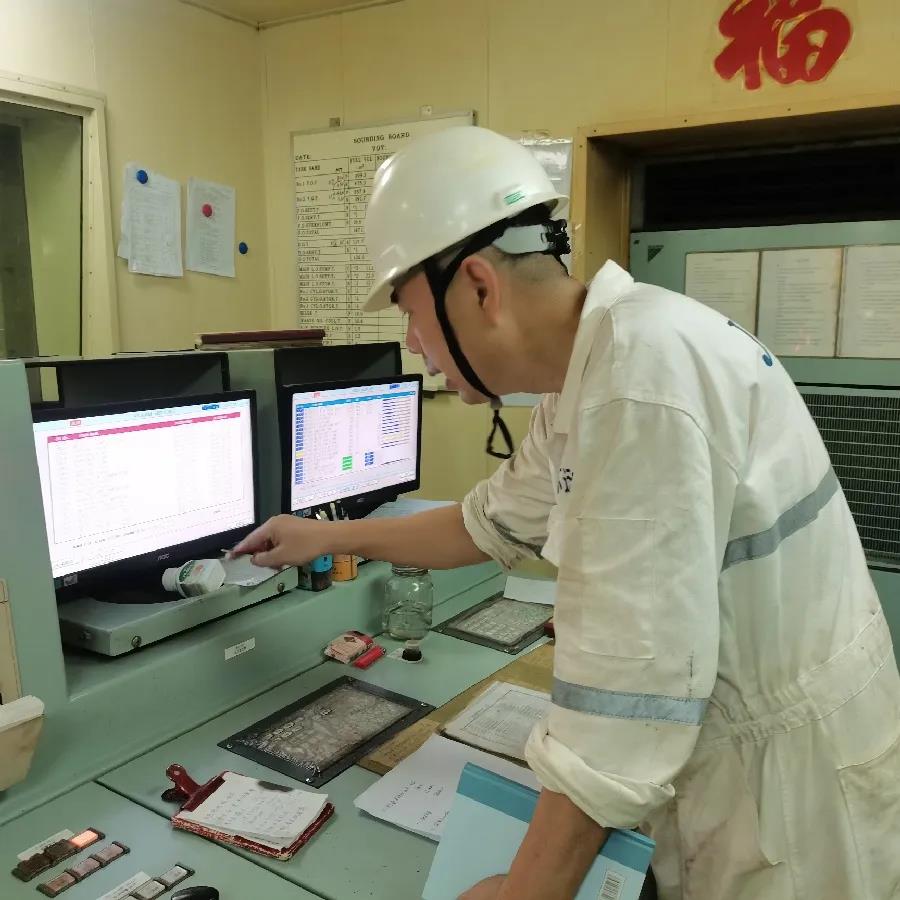 輪機長施國強帶領(lǐng)輪機員在機艙內(nèi)進(jìn)行細(xì)致的檢查,確保主機、輔機、舵機等機械設(shè)備處于良好工況。