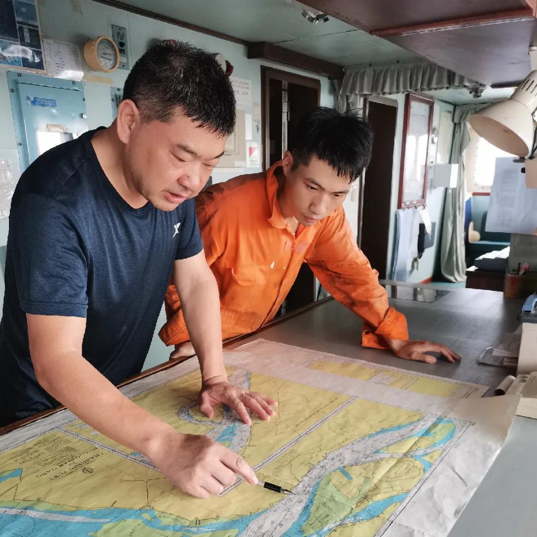 陳船長和駕駛員及時收集最新的長江航行通告和相關(guān)信息,了解航道中浮筒位置和航道水深情況,對照航海圖書資料和航行計劃進(jìn)行研究,根據(jù)最新信息將海圖改正至最新,并制訂出最佳的航行和操作方案。