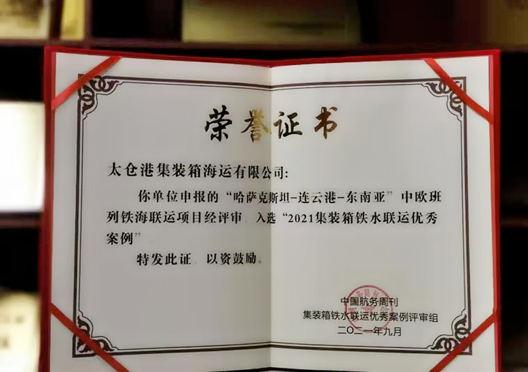 公司“哈薩克斯坦-連云港-東南亞”中歐班列鐵海聯(lián)運(yùn)項(xiàng)目入選“2021集裝箱鐵水聯(lián)運(yùn)優(yōu)秀案例”